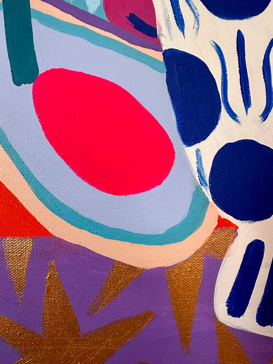Mary Beth is a Richmond, VA-based artist specializing in bold, colorful paintings of flowers and everyday moments. She enjoys playing with scale, pattern and weaving travel inspiration into her work.